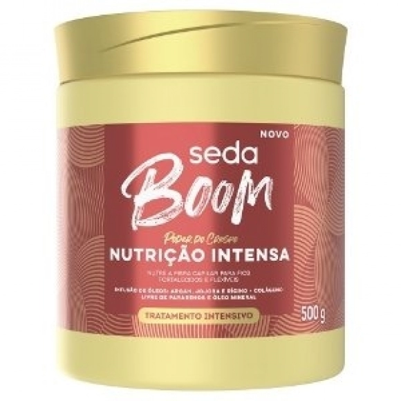 CABELO & BARBA>TRAT INTENSIVO SEDA BOOM 500G NUTR INT ARGAN/JOJOBA/RICINO/COLAGENO
