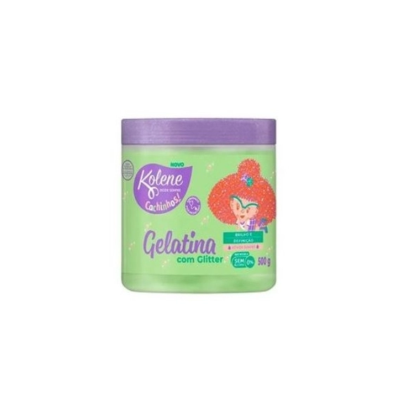 CABELO>GELATINA CAP INFANTIL KOLENE CACHINHOS 500G COM GLITTER MACA VERDE