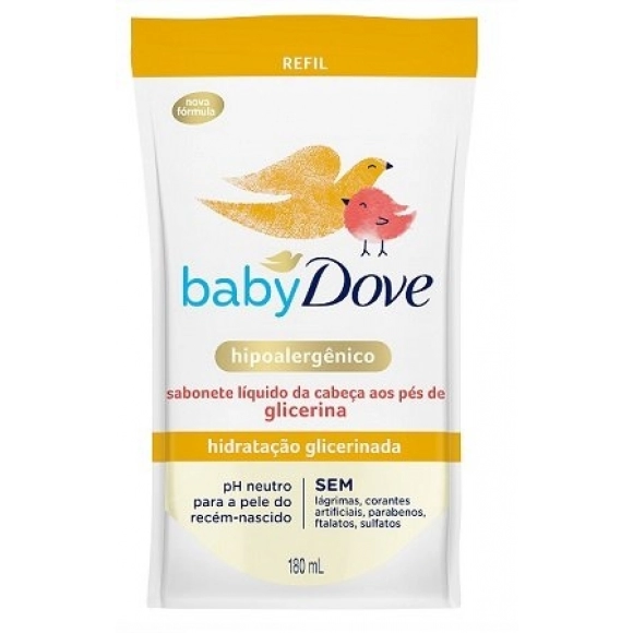 HIGIENE>SAB LIQ DOVE BABY 180ML REFIL HIDRAT GLICERINADA CABECA AOS PES
