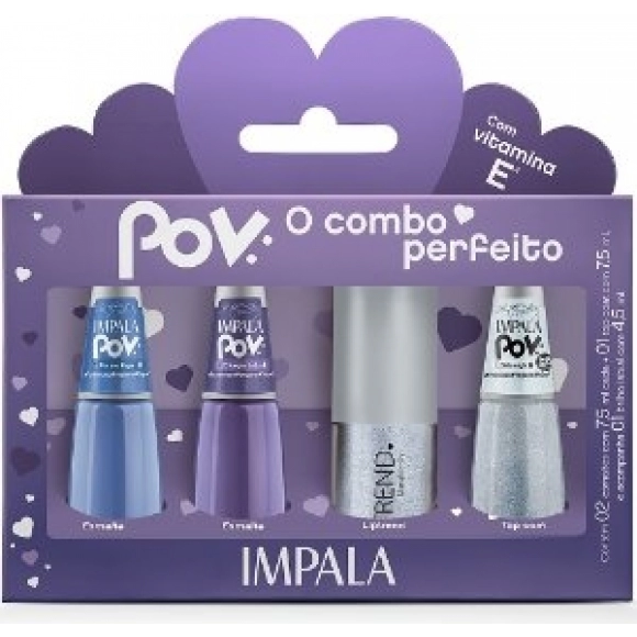 MÃOS & PÉS>KIT IMPALA POV 2 ESMALTES+1 TOP COAT+1 GLOSS LABIAL MARIA NICOLLY