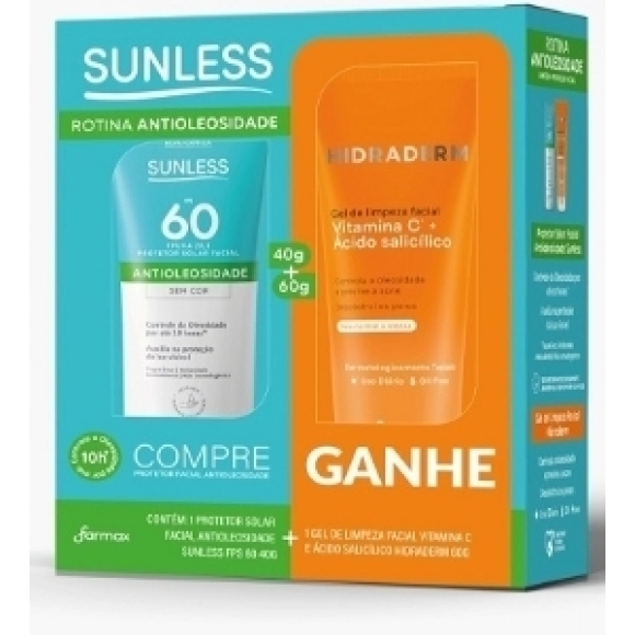Todos>KIT ANTIOLEOSIDADE FACIAL SUNLESS FARMAX FPS 60 40G + GEL DE LIMPEZA 60G