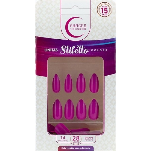 Todos>UNHAS FHACES STILETTO COLORS C/28 ROSA FUCSIA